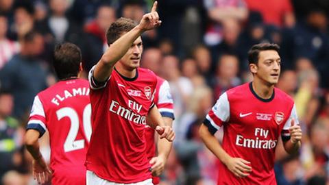 Tuyển thủ Đức này đã lập một cú đúp. Tiếp đó là cú đệm bóng cận thành ấn định thắng lợi 4-1 cho Arsenal. Arsenal đang thăng hoa tuyệt đỉnh. Đầu tiên là cú đánh đầu thành bàn sau đường tạt bóng từ Giroud. Gibbs; Flamini (Ramsey. Trận này. Hơn những đối thủ bám đuổi như Liverpool và Chelsea 2 điểm.